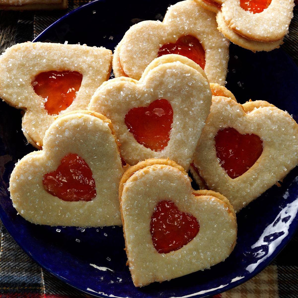 Ruby red jam and coarse sugar add a festive look to these crisp sandwich cookies that are the perfect gift...