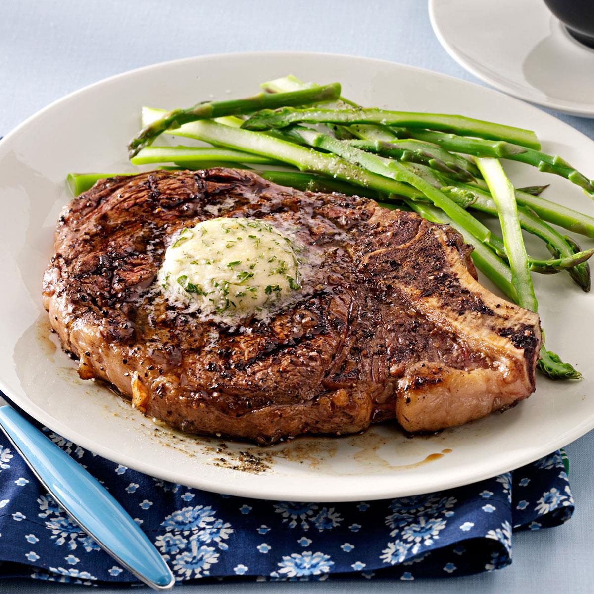 Grilled Ribeyes with Herb Butter