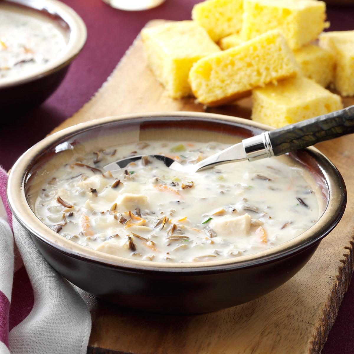 Tender cubes of chicken, fresh vegetables and wild rice make this soup hearty enough for a meal. You can't beat...