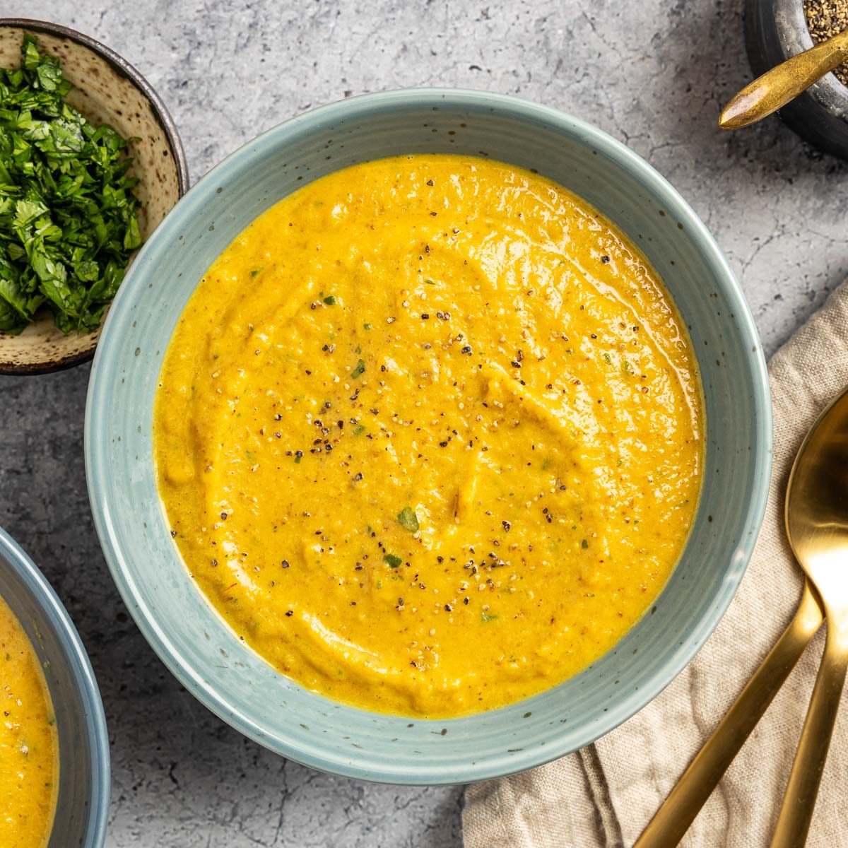This spice-infused pumpkin soup with a velvety coconut milk base is the ultimate autumnal make-ahead meal.